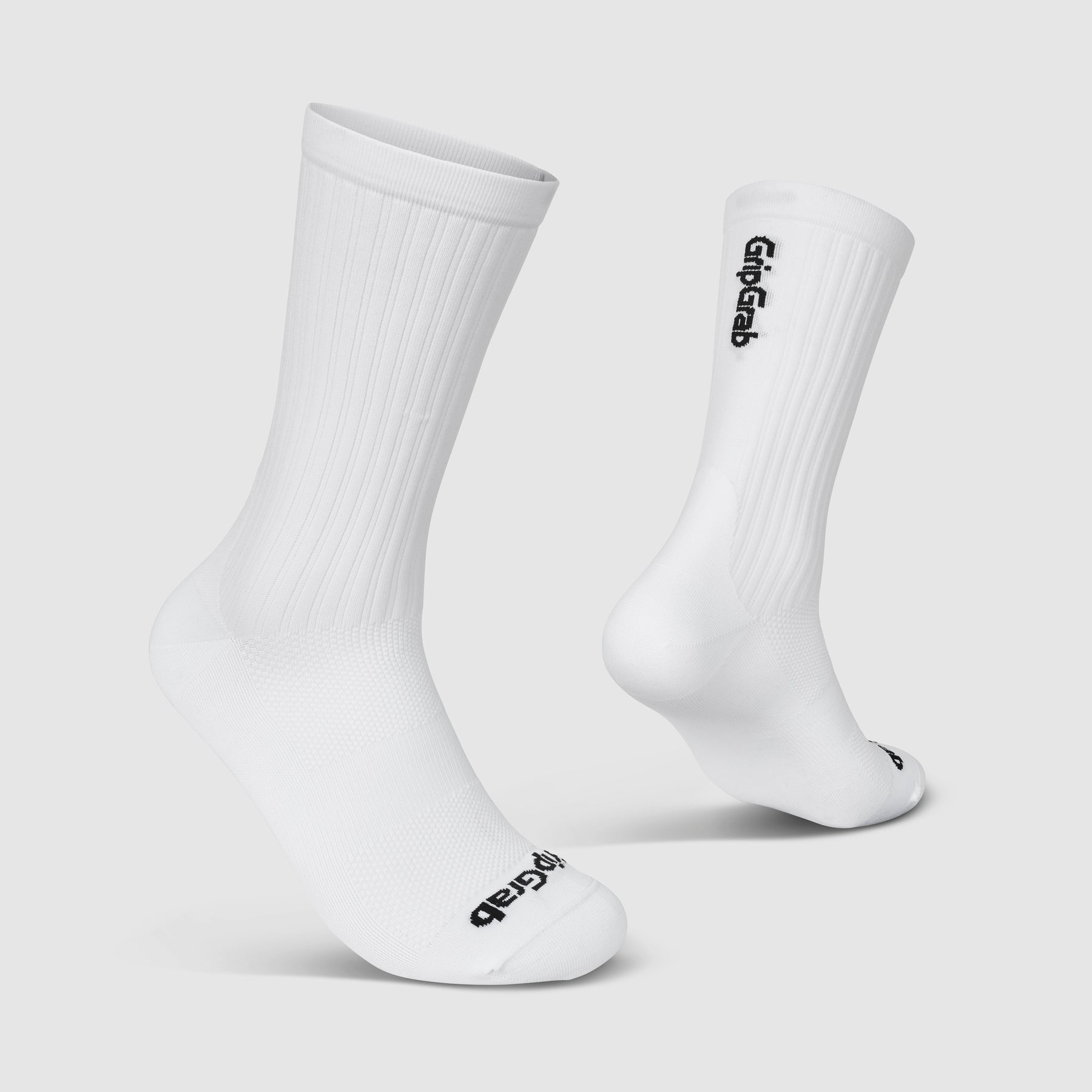 Are they aero socks? They are not time-trial aero socks, but the smooth knit surface and structured shaft are designed to create a clean, race-focused profile and minimise visual bulk. For most compression and aero-gains go with FastStream. Do they stay in place during hard efforts? Yes. The compression knit shaft and stretch arch support help stabilise the sock on both the foot and lower leg during high-intensity riding. Are they good for hot weather? Yes. Open mesh zones and Coolmax® EcoMade fibres promote airflow and moisture transfer to keep feet dry in warm conditions.